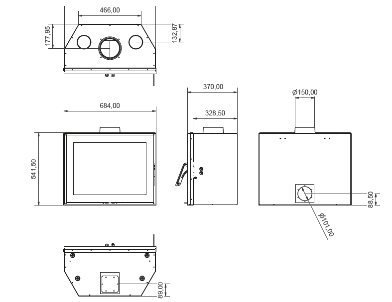 Dimensions 37 × 68 × 54 cm